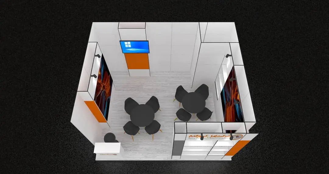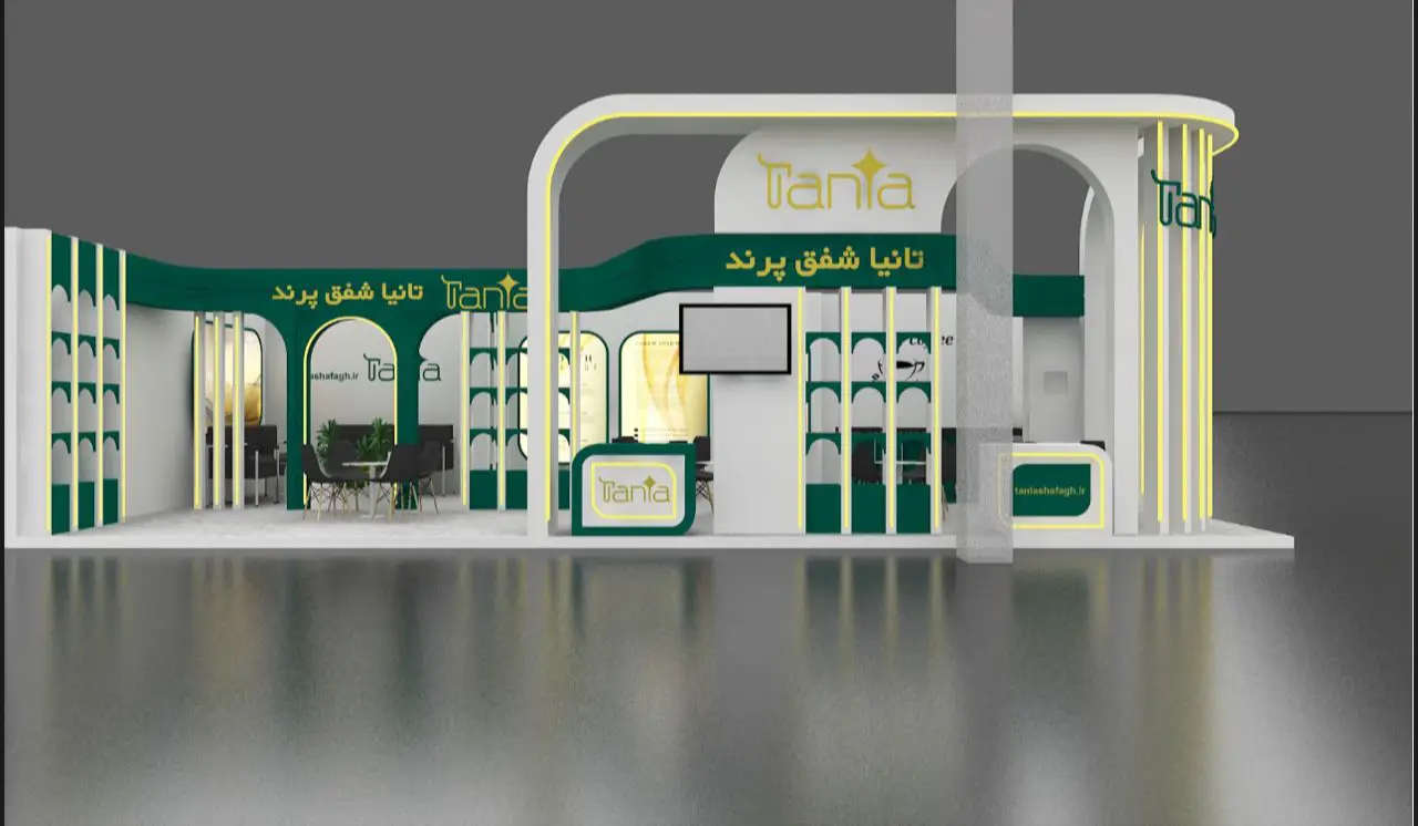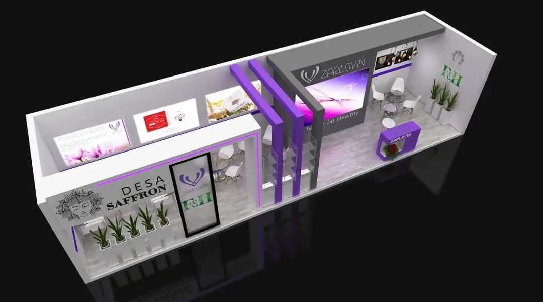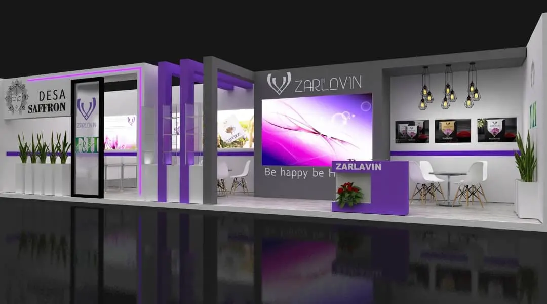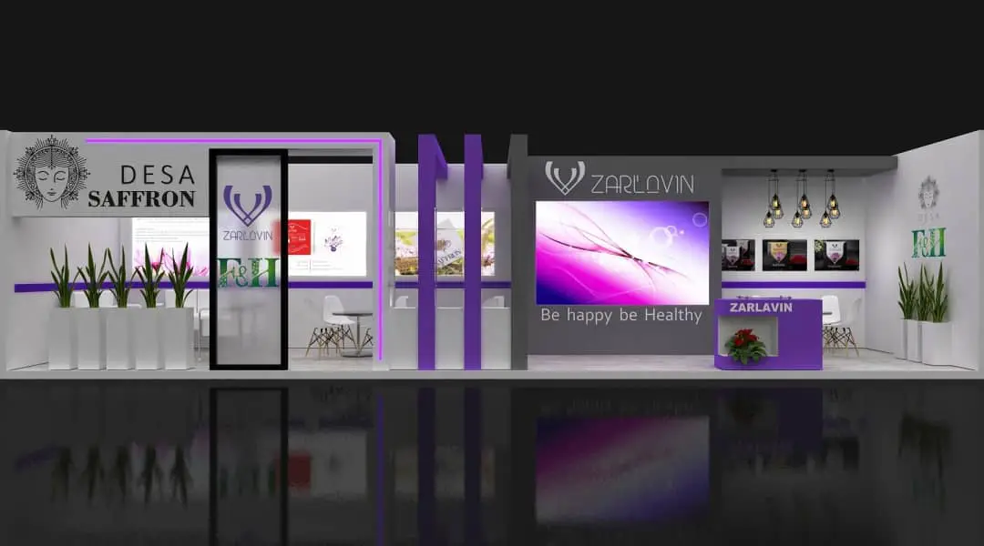 • غرفه نمایشگاه مواد غذایی: تمرکز بر بهداشت، نورپردازی گرم (برای جذاب نشان دادن خوراکی ها) و فضای سمپلینگ (تست محصول). استفاده از کانترهای یخچالی و سینک ظرفشویی در طراحی الزامی است.