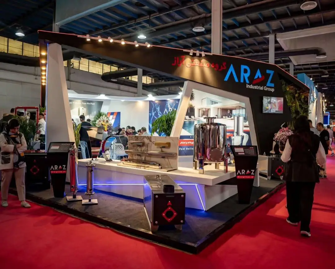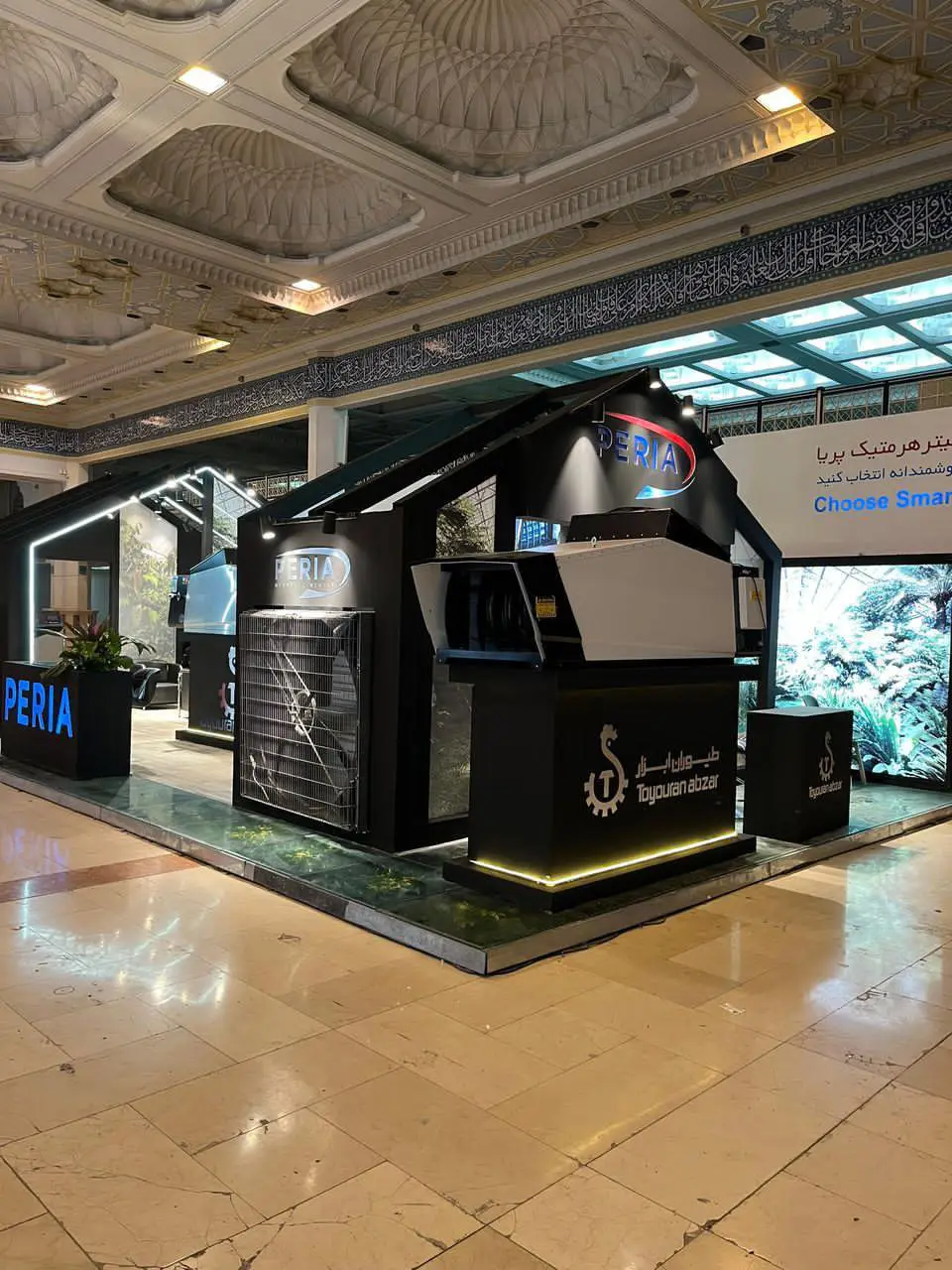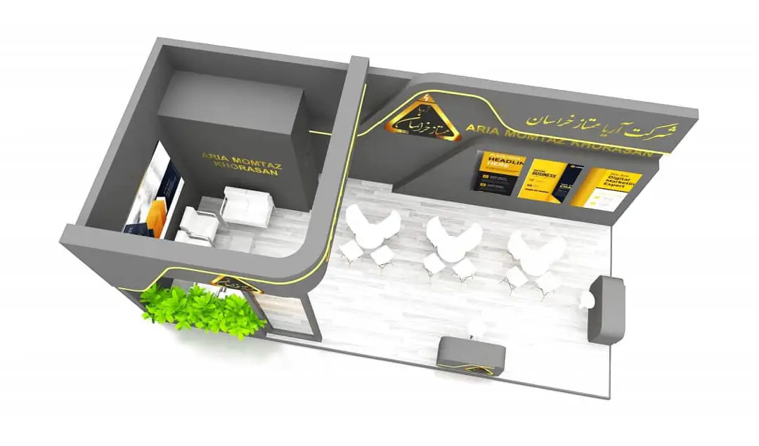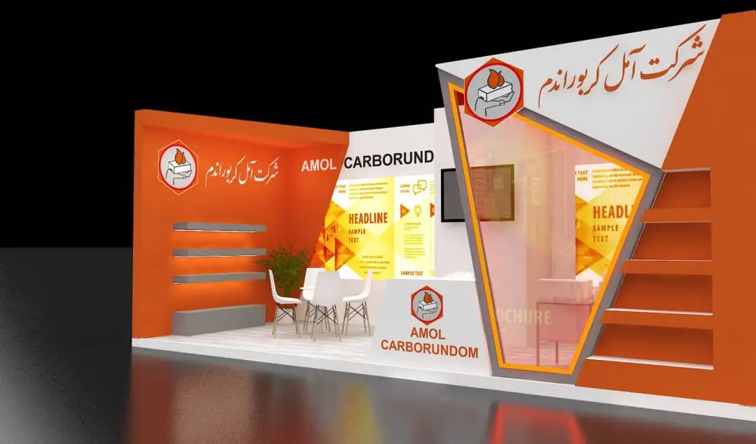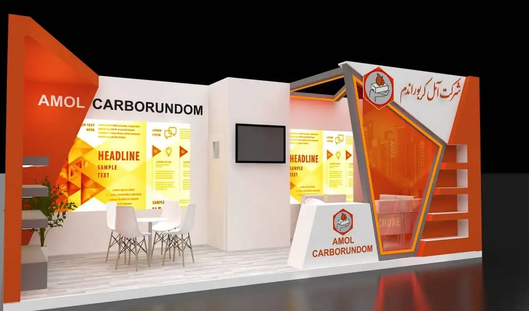 • غرفه نمایشگاه مواد غذایی: تمرکز بر بهداشت، نورپردازی گرم (برای جذاب نشان دادن خوراکی ها) و فضای سمپلینگ (تست محصول). استفاده از کانترهای یخچالی و سینک ظرفشویی در طراحی الزامی است.