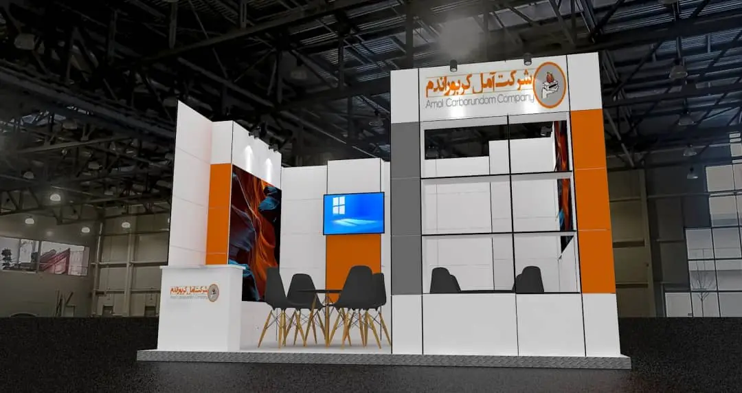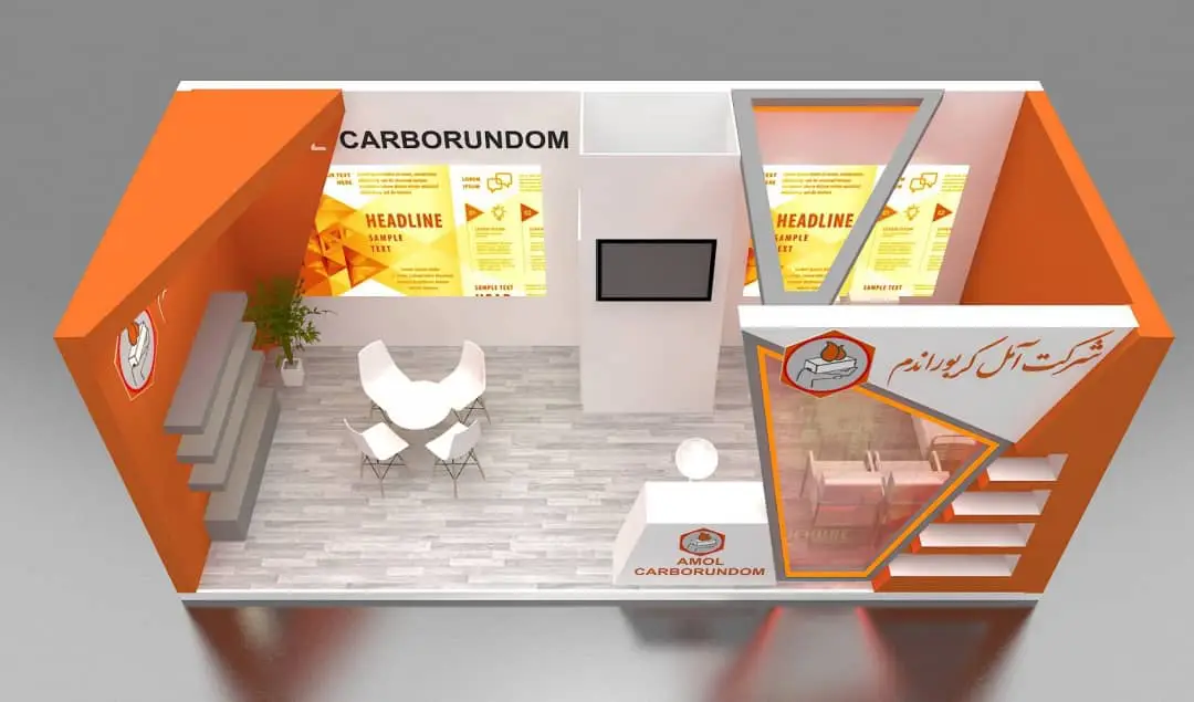 • غرفه شرکت های صنعتی: تمرکز بر نمایش ماشین آلات سنگین. سازه باید مینیمال و مستحکم باشد تا دستگاه ها دیده شوند.